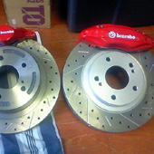 スカイラインのブレーキを研磨&塗装。ブ○ンボ仕様♪これをスカージアに移植 |