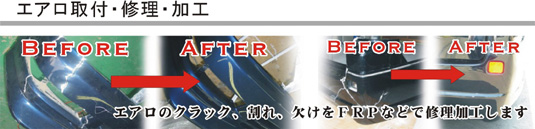 エアロのクラック、割れ、欠けをFRPなどで修理加工します |