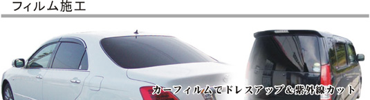 カーフィルムでドレスアップ。紫外線カット、飛散防止、断熱性向上。 |