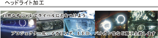 自然なオシャレでライバルに差をつけよう。プロジェクター化、イカリング、LED、バルカン化など加工全般します |